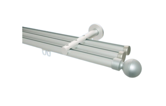 Gardinenstange Innenlaufsystem Silber Kunststoff Kugel 3lfg.in modernem Silber Ø20 mmim Lieferumfang enthalten: Träger 3- läufig Innenlaufschienen Aluminium Endstücke Modell Kunststoff Kugel auf den hinteren Laufschienen Modell Kappe Montagezubehör vielseitig verwendbar z.B. für Flächenvorhänge, Gardinen usw. Versand erfolgt mittig geteilt incl Verbinder .Gerne versenden wir auch die Garnitur für Sie komplett am Stück per Spedition weitere Gardinenschienen,Elekto Schienen oder Schnurzugschienen in großer Auswahl auf Anfrage Achtung! begrenztes Angebot! nur solang der Vorrat reicht!