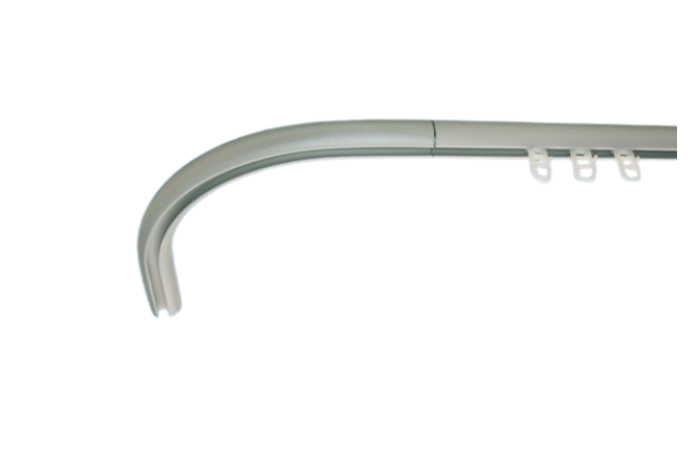Bogen für Gardinenstange 20 mm Innenlaufystem silber Farbe silber Ø20 mm Für Gardinenstangen mit Innenlaufsystem 20 mm Ø farbe silber matt Im Lieferumfang enthalten: 1x Bogen incl 2 Verbinder mit Innenlaufsystem 20 mm Aluminium Beim Durchschleuderbogen 2 Verbinder Beimn Retourenbogen 1 Verbinder „Sie können wählen zwischen Durchschleuderbogen -Hier können Sie die Schiene ins Rauminnere führen und somit Erkerfenster oder Fenster, die an der anschließenden Seite des Raumes sind, durchgängig bedienen. Ausklinker benötigen Sie für diesen Bogen keine. Retourenbogen - Sie schließen beidseitig oder einseitig am Fenster beziehungsweise an der Wand ab. Bei diesem Bogen sind Ausklinker sinnvoll. Angabe der Seite für den Retourenbogen, richtet sich nach der Schiene in der Draufsicht. Gerne erstellen wir ein Angebot für Sonderbiegungen, mailen Sie uns dazu eine Skizze mit der Draufsicht. Als Zubehöhr empfehlen wir Ihnen unsere Klick Gleiter oder X Gleiter die im Lieferumfang nicht enthalten sind.“ Dieser Artikel wird nach Maß gefertigt. Leider müssen wir eine Rückgabe ausschließen. Gerne senden wir vorab kostenlose Warenmuster. Ihr Classico - Design Team