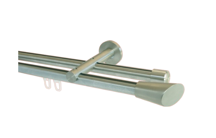 Gardinenstange Innenlauf doppel. Edelstahldesign 20 mm Kappe