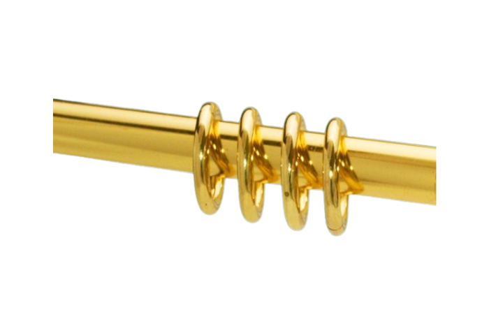 Ringe Metall Messing glanz für 16 mm Gardinenstangen im Lieferumfang enthalten: - 1Stück - für Rohre mit einem Durchmesser von 16 mm - incl Faltenlegehaken aus Kunststoff für Ihre Gardinen - Material Metall Messing glanz optik